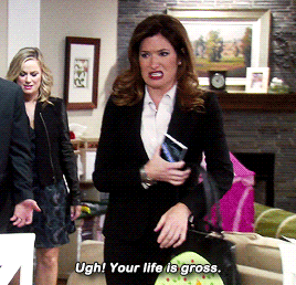Of course, I would be remiss if I didn’t at least mention Typhoon, the one, true love of Craig Middlebrooks. Considering the main cast is primarily white, I thought Typhoon was going to be a one-time character – as Ron’s replacement hairstylist after his regular one died – and was pleasantly surprised that he married Craig and made an appearance in the finale (older but definitely still fabulous and and in love with his husband). There was a gay penguin wedding in the second season, and Chris was not at all bothered by being hit on by men, so it’s not like queerness was something that the show steered clear from, but it was so nice to see that this wasn’t treated any differently than other characters getting together. And they are absolutely perfect for each other, and no one can tell me any different.