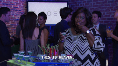 Donna completely understands that everything at this party is ludicrous and is only there to 1) mingle with celebrities and 2) support Ron. This is one of the major differences between Tom and Donna; while Tom soaks in the luxe lifestyle so as to puff up his ego, Donna simply revels in the drama of it all. Sure, she likes nice things, but she will gladly bankroll April to sign up for sommelier certification or secretly admit that she wants her estranged brother Lavondrius at her wedding. She just wants to see shit go down. This is why I 100% believe Donna and I would be friends; shit just sort of happens around me, and she would enjoy the hell out of the show.