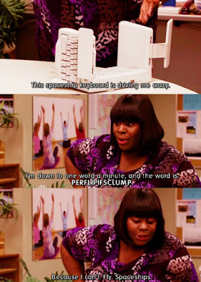 If you can’t read the text, it says, “This spaceship keyboard is driving me crazy. I’m down to one word a minute, and the word is PERFLIPIFSCLUMP because I can’t. Fly. Spaceships.”