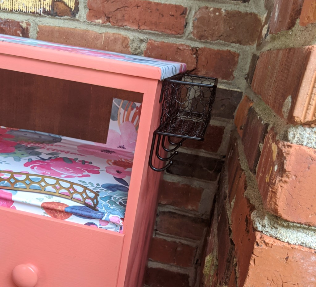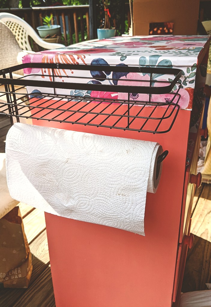 The paper towel holder was actually a suggestion my mom gave me, and even though I was skeptical at first, I like the idea of having a place to keep paper towels, and the caddy on top currently holds a bottle of wasp spray, so it’s already doing the Lord’s work*. The dresser is going to be outside, so I don’t know how clean those towels will be, but hey, it’s the thought that counts.