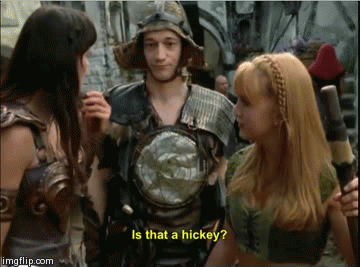 Xena is complaining about how the day keeps resetting and is trying to prove to Gabrielle and Joxer that she’s not crazy, saying that she doesn’t have any Bacchae bites on her neck. Joxer then asks, “Is that a hickey?” Gabrielle’s face, though, is the best part, even if Joxer is like, “Oh … right. Nevermind.”
