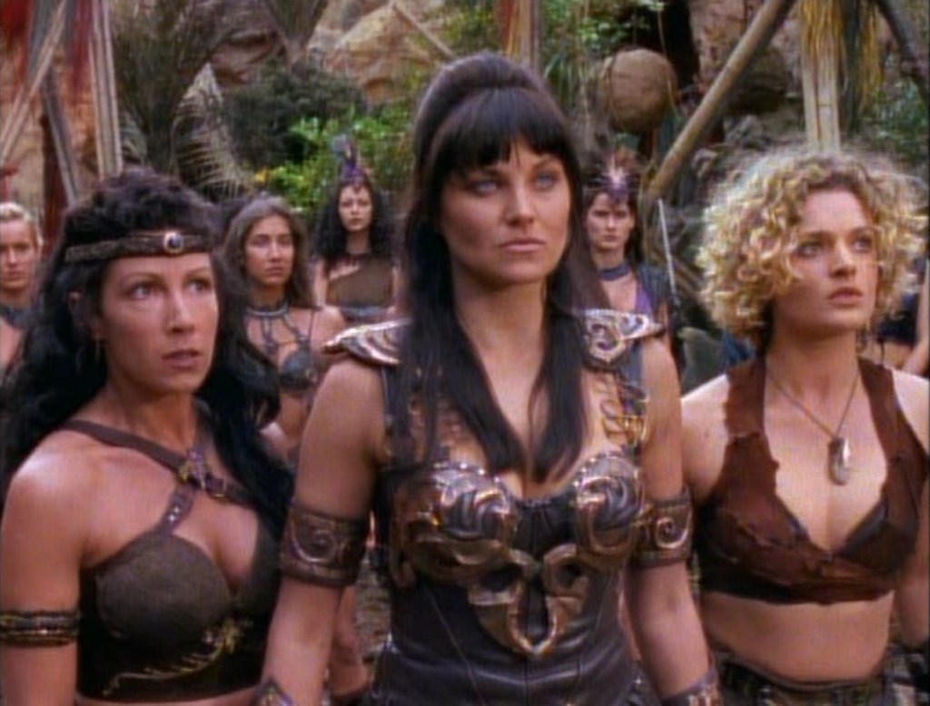 Recap: Xena and Gabrielle are passing through a forest and run across some Amazons, who take the pair to see Queen Melosa in order to get permission to pass through their territory. On the way there, Terreis, Melosa’s sister and heir to the throne, is killed by an arrow, and Gabrielle is given her right of caste because she attempted to shield Terreis from further arrows. The what’s what is that the Amazons are in a strenuous position with centaurs (against whom Xena had fought before but never defeated), and things are fishy because there’s a warlord in the middle, basically being like the US and just selling arms to whomever. The Amazons catch a centaur that they believe is responsible for Terreis’ death and sentence him in kind, which will def start a war, so Xena goes investigating, with Ephiny following behind. Long story short, the warlord killed Terreis, and the centaurs and Amazons fight him and his men, and the centaur who was captured ends up marrying Ephiny and siring a baby, Xenan, with her (that’s in another episode later in the season).