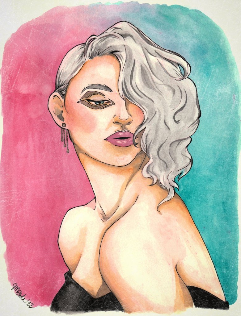 Now, obviously, I’m not trying anything too daring for my first venture out, but I really enjoyed the process. I had to worry about shading a bit more than I have previously, which wasn’t the most successful part of this piece – which I have named “glam…” – but hey, I’m always learning.